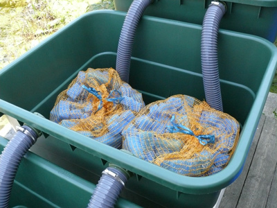 Filterwürfel in Kunstoffsäcke zum einfachen entnehmen und reinigen.